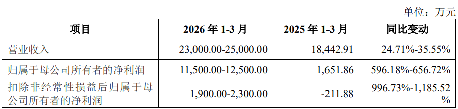 2026年1-3月,中科儀預(yù)計(jì)實(shí)現(xiàn)營(yíng)業(yè)收入23,000.00萬(wàn)元至25,000.00萬(wàn)元,同比增長(zhǎng)24.71%至35.55%;預(yù)計(jì)實(shí)現(xiàn)歸母凈利潤(rùn)11,500.00萬(wàn)元至12,500.00萬(wàn)元,同比增長(zhǎng)596.18%至656.72%;預(yù)計(jì)扣非歸母凈利潤(rùn)為1,900.00萬(wàn)元至2,300.00萬(wàn)元,同比增長(zhǎng)996.73%至1,185.52%。
